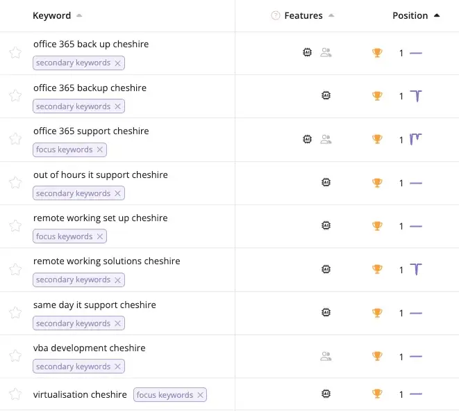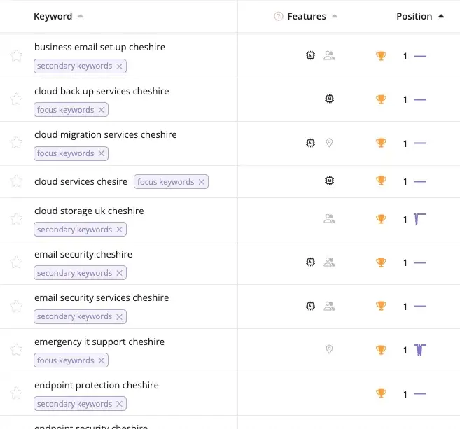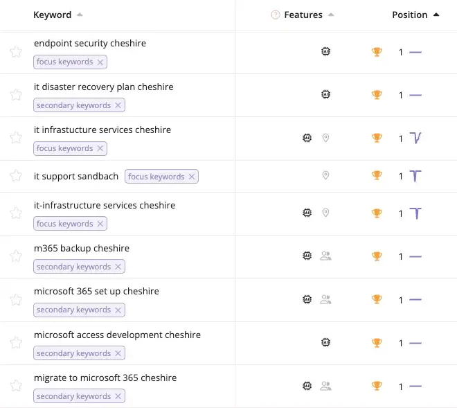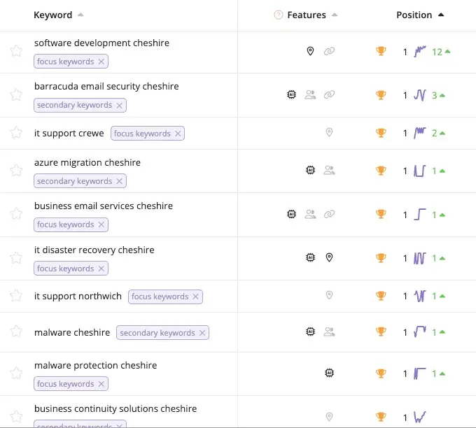 Since launching in June 2025, the website achieved 96 Page One rankings for IT support keywords combined with “Cheshire” – capturing local search visibility across their entire service range. The high-performance, conversion-optimised website combined with strong local rankings drove 612 clicks vs 324 previously (89% increase) and 189k impressions vs 79.7k previously (137% increase) in the last 6 months.
